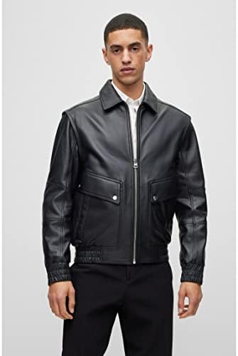 This HUGO Larvid leather jacket offers premium quality and timeless style. Crafted from high-quality leather, this jacket is both durable and stylish, making it the perfect addition to any wardrobe. With its sleek and classic design, this jacket is perfect for any occasion. Upgrade your style and stay on trend with the HUGO Men's Larvid leather jacket.